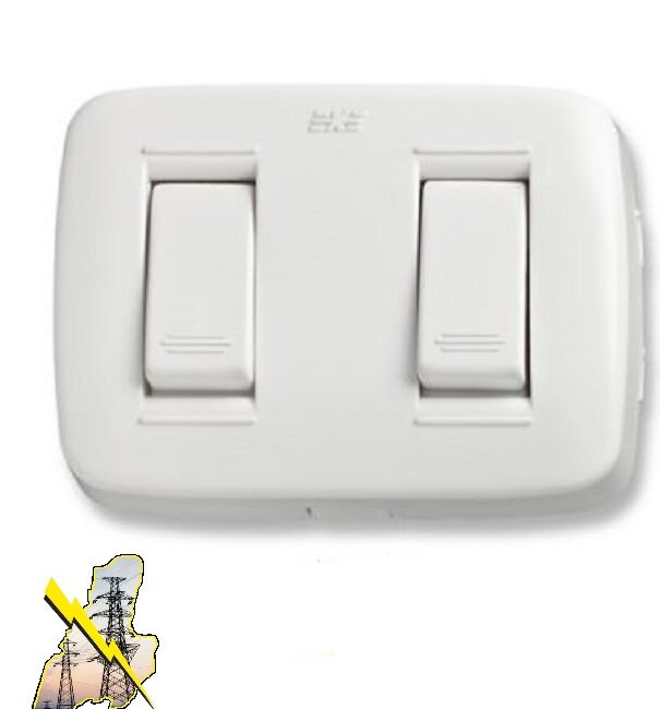 Interruptor doble de sobreponer es aquél que nos permite controlar la corriente eléctrica enviada a dos destinos por separado. .. debe ir instalado en un doble fondo o pared.